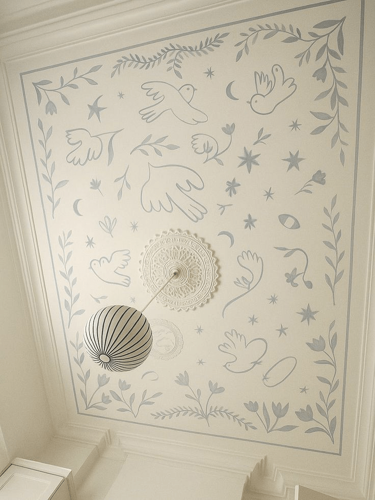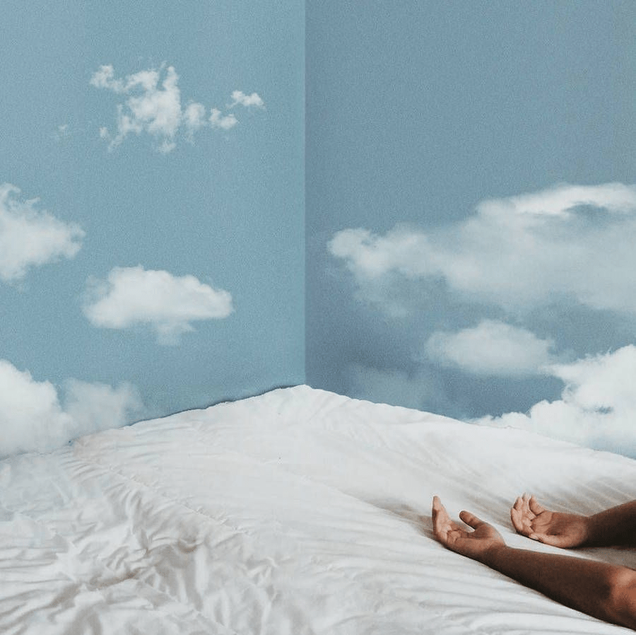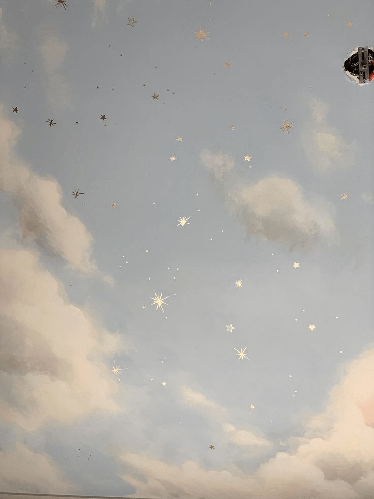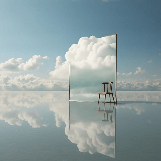 Якщо не подобаються дзеркальні хмари, можемо вирізати реальну імітацію хмаринок у блакитному чи молочному відтінку, розставити в об'ємі і з-за них випускати квіти