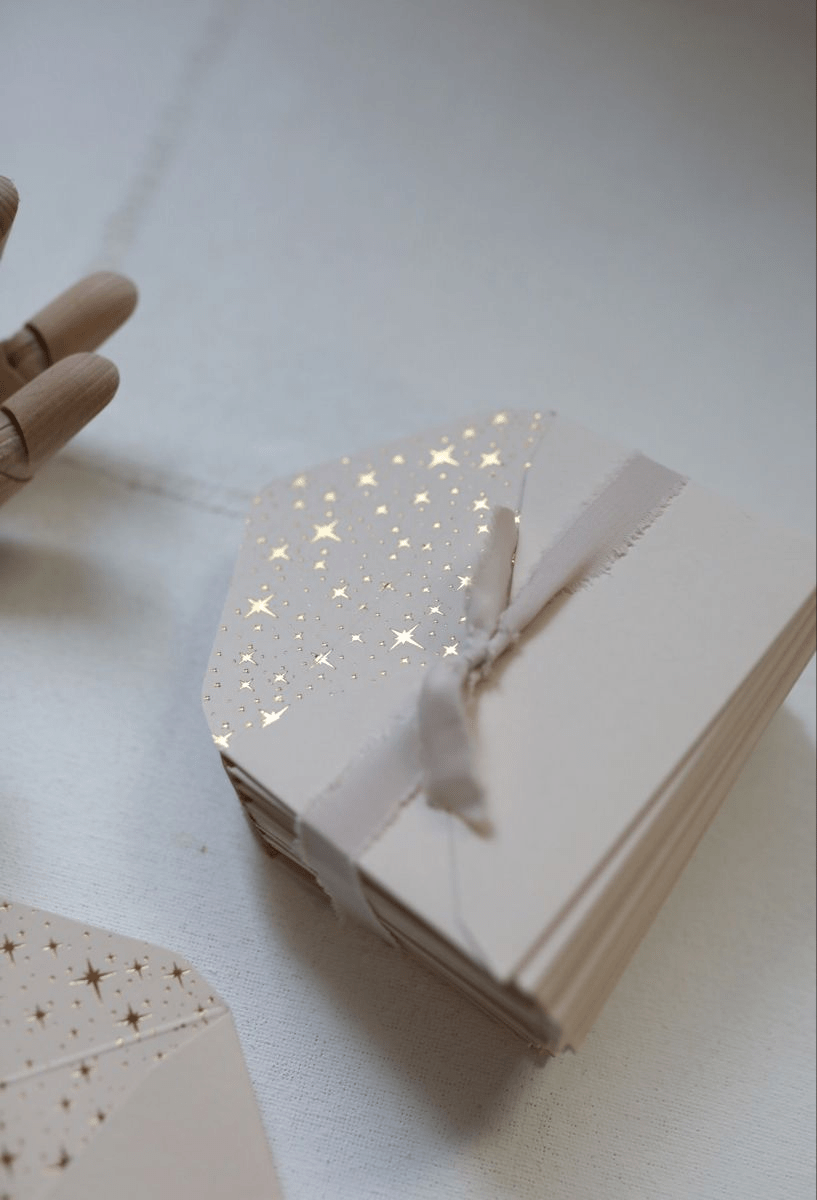 На тканинці можемо додати дрібненькі золоті чи срібні зірочки із пластику як на референсі квіточки