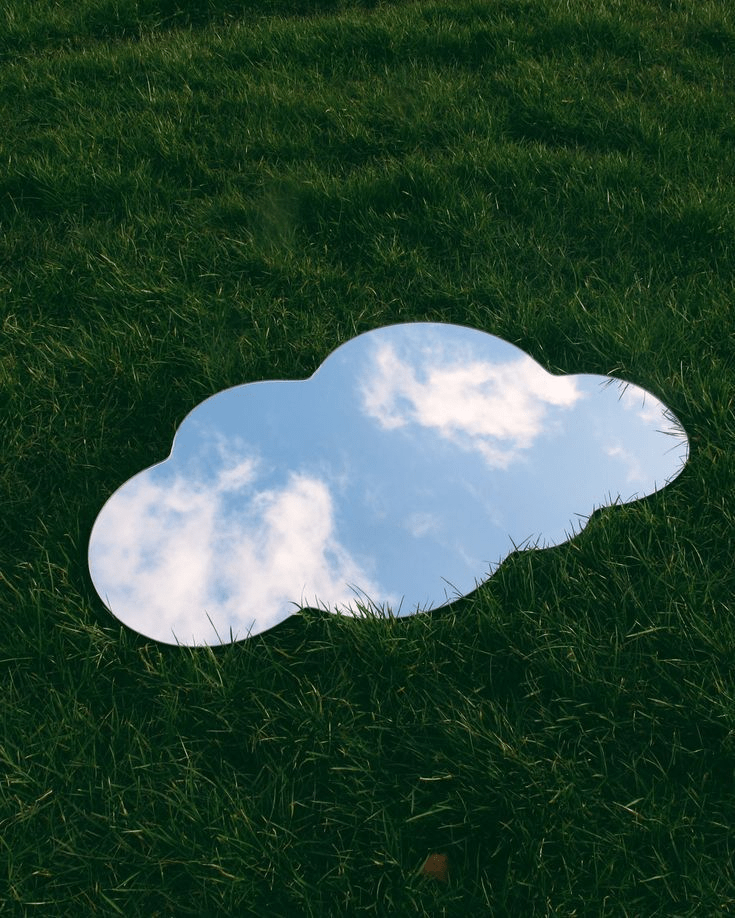 Під композиції можемо вирізати хмаринки з дзеркального пластику, у якому відображатимуться квіти
