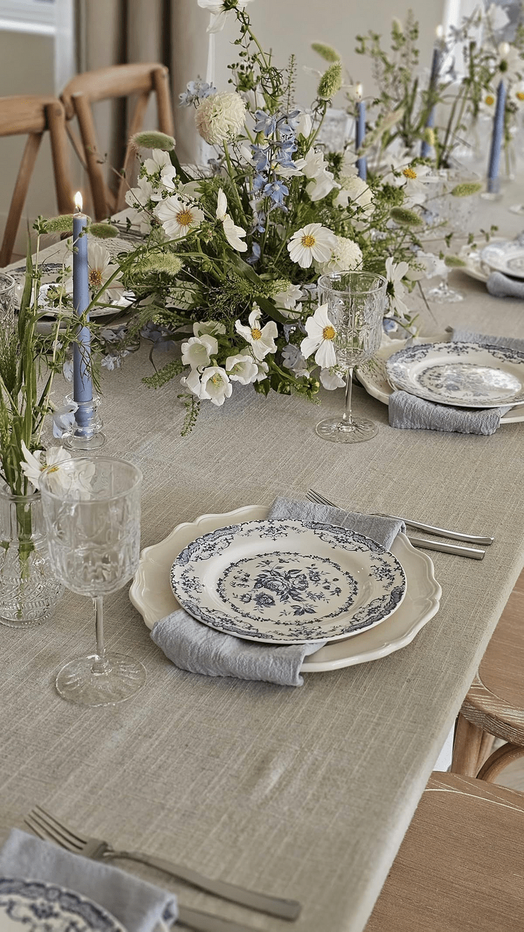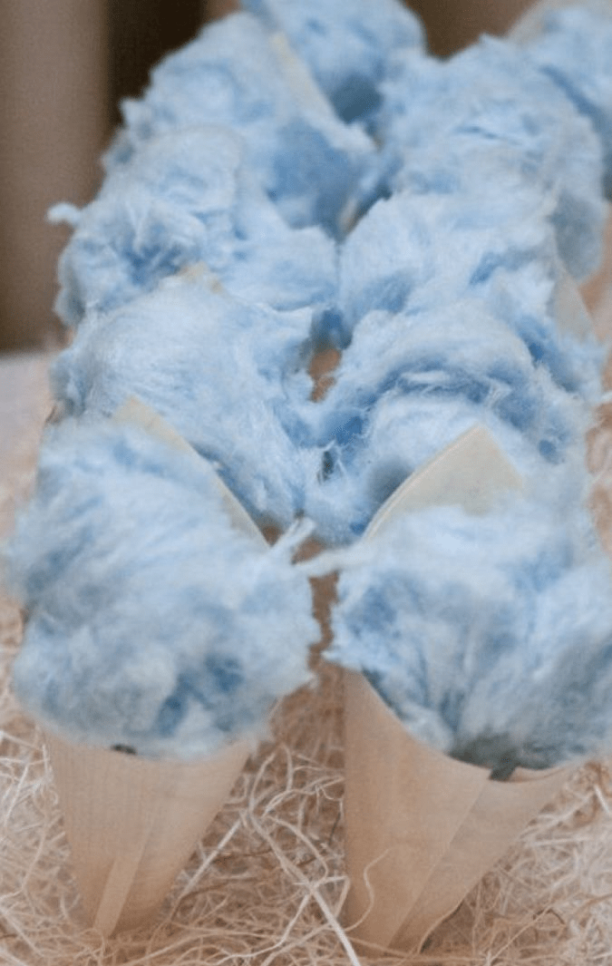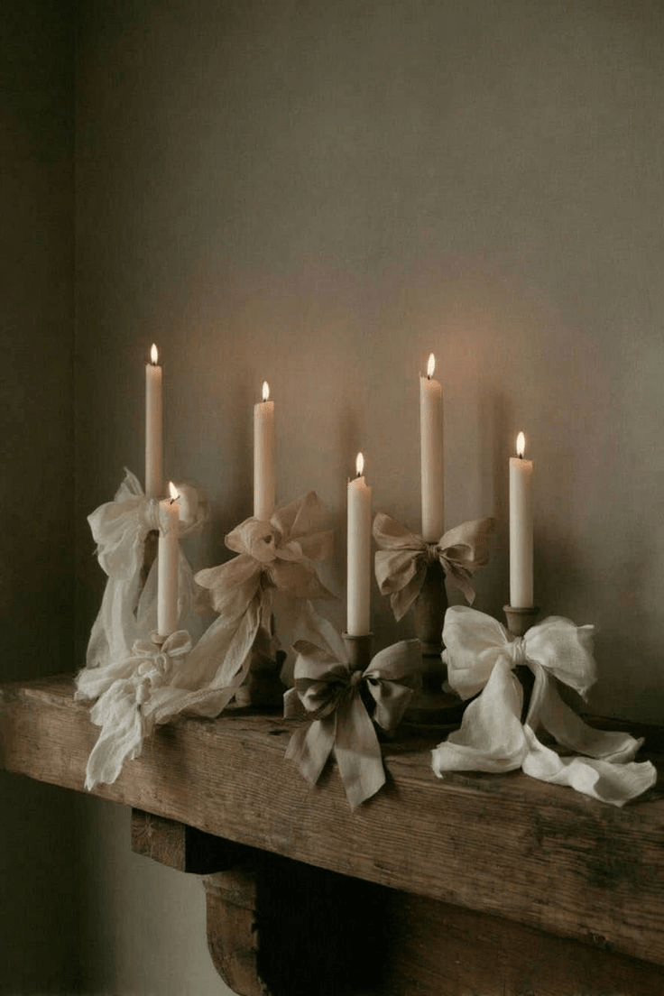 поєднати насипний віск у них та скляні підсвічники з довшими свічками у відтінку блакитної тканинки.