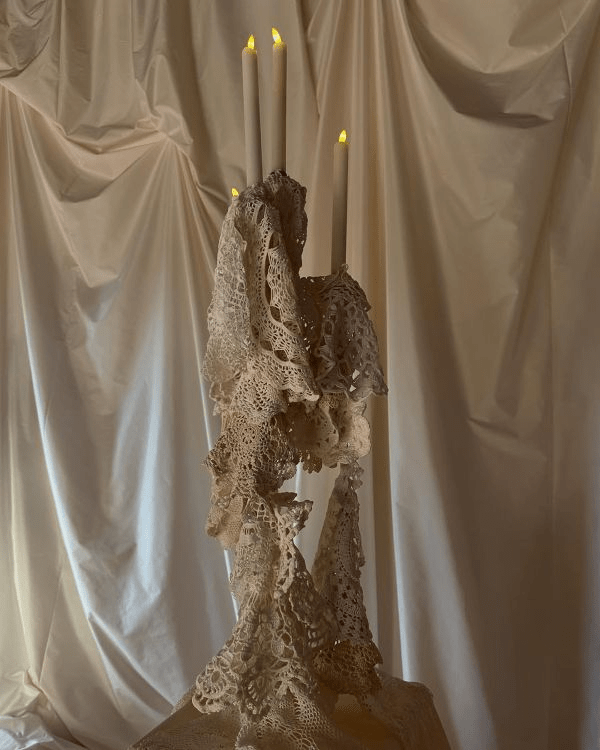 Частину свічок чи канделябрів прикрашаємо мереживом