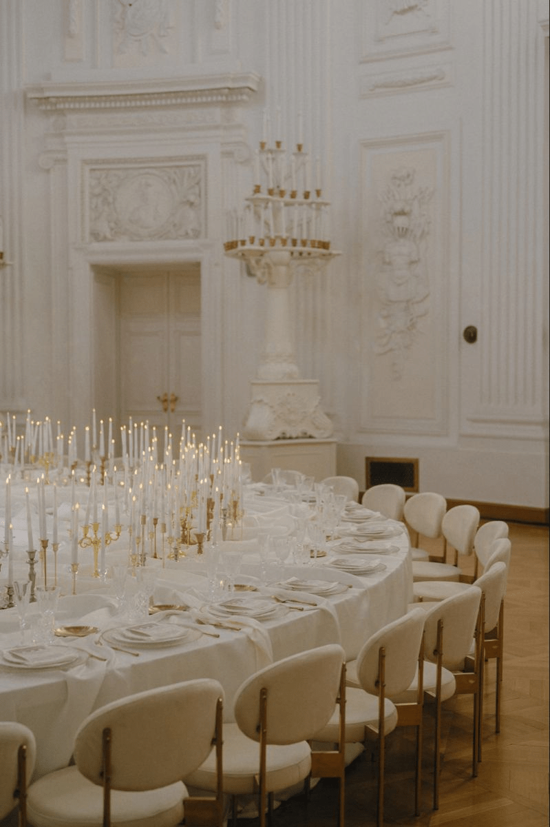Залежно від форми столів, можемо зробити різне драпірування, у місцях де це буде проглядатись