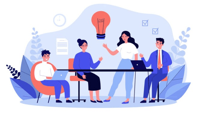 Employees discuss ideas in meetings