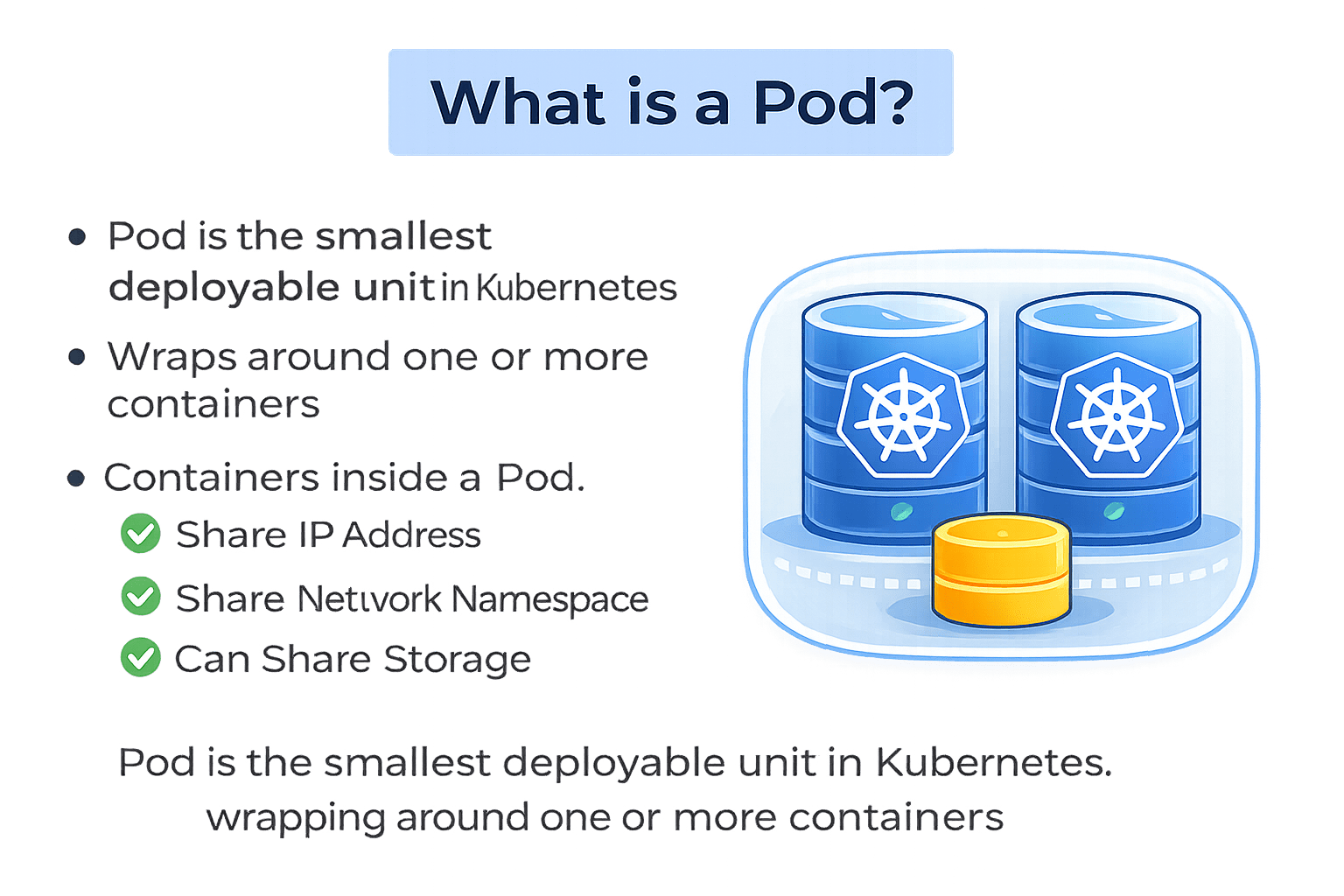 Pod is the smallest deployable unit in Kubernetes wrapping around one or more containers