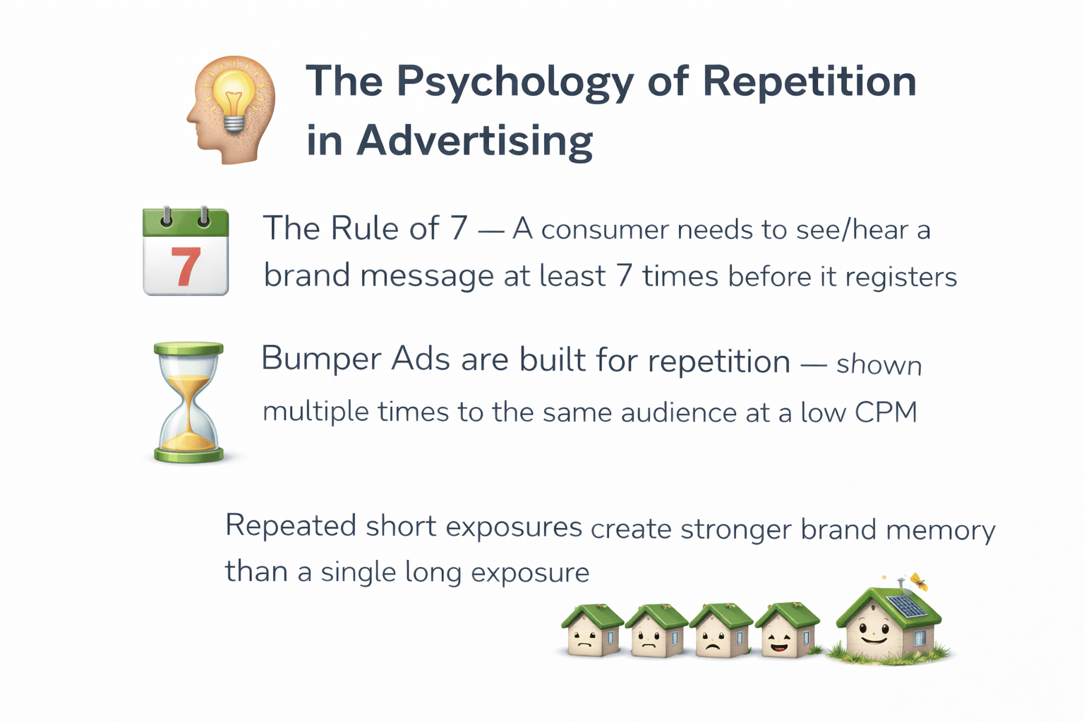 Bumper Ads are built for repetition — shown multiple times to the same audience at a low CPM