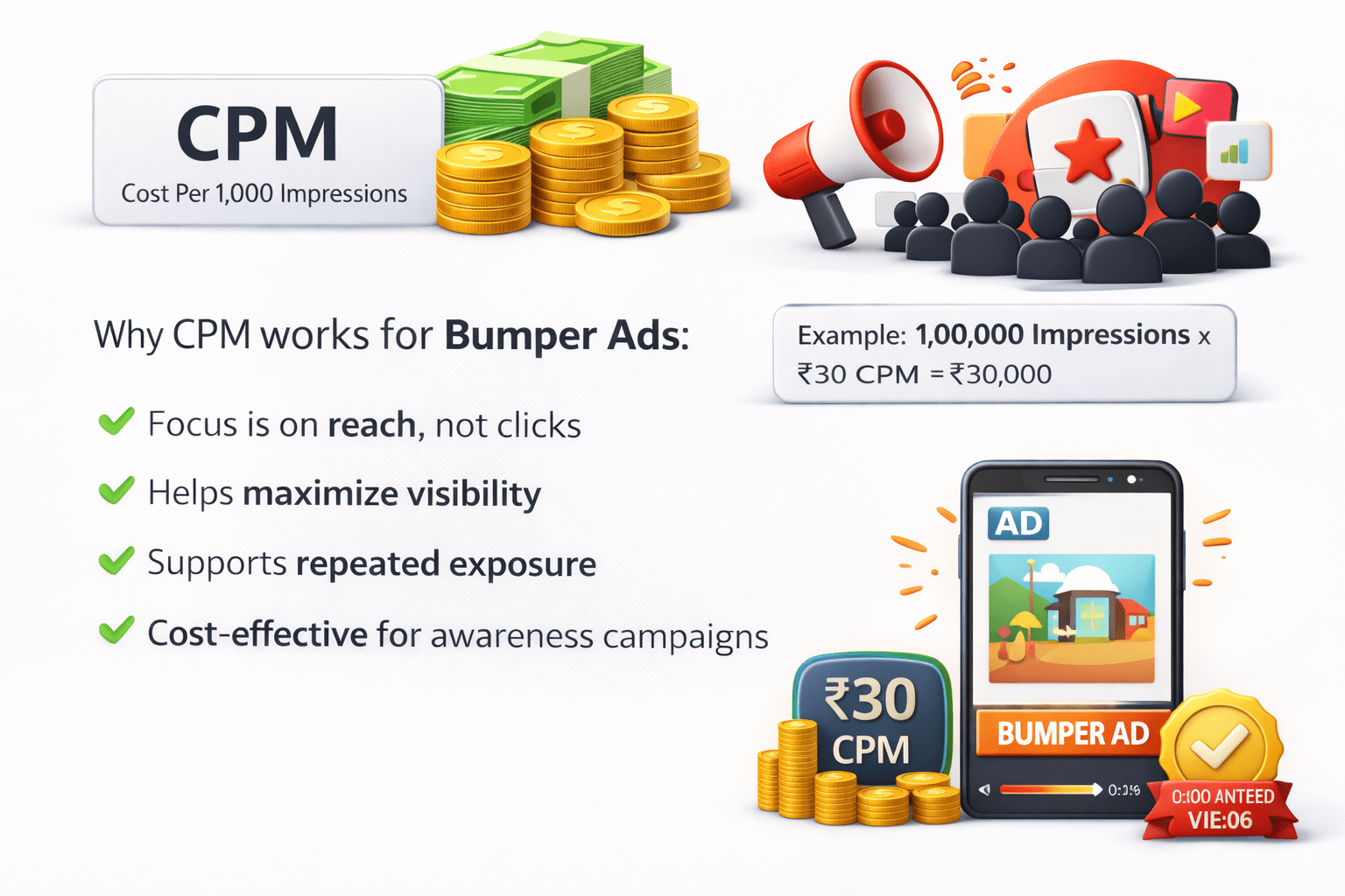 If your ad gets 1,00,000 impressions and CPM is ₹30, you pay based on those impressions shown.