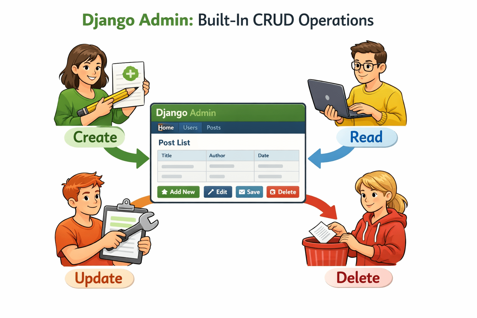 Perform Create, Read, Update, and Delete operations using Django Admin.