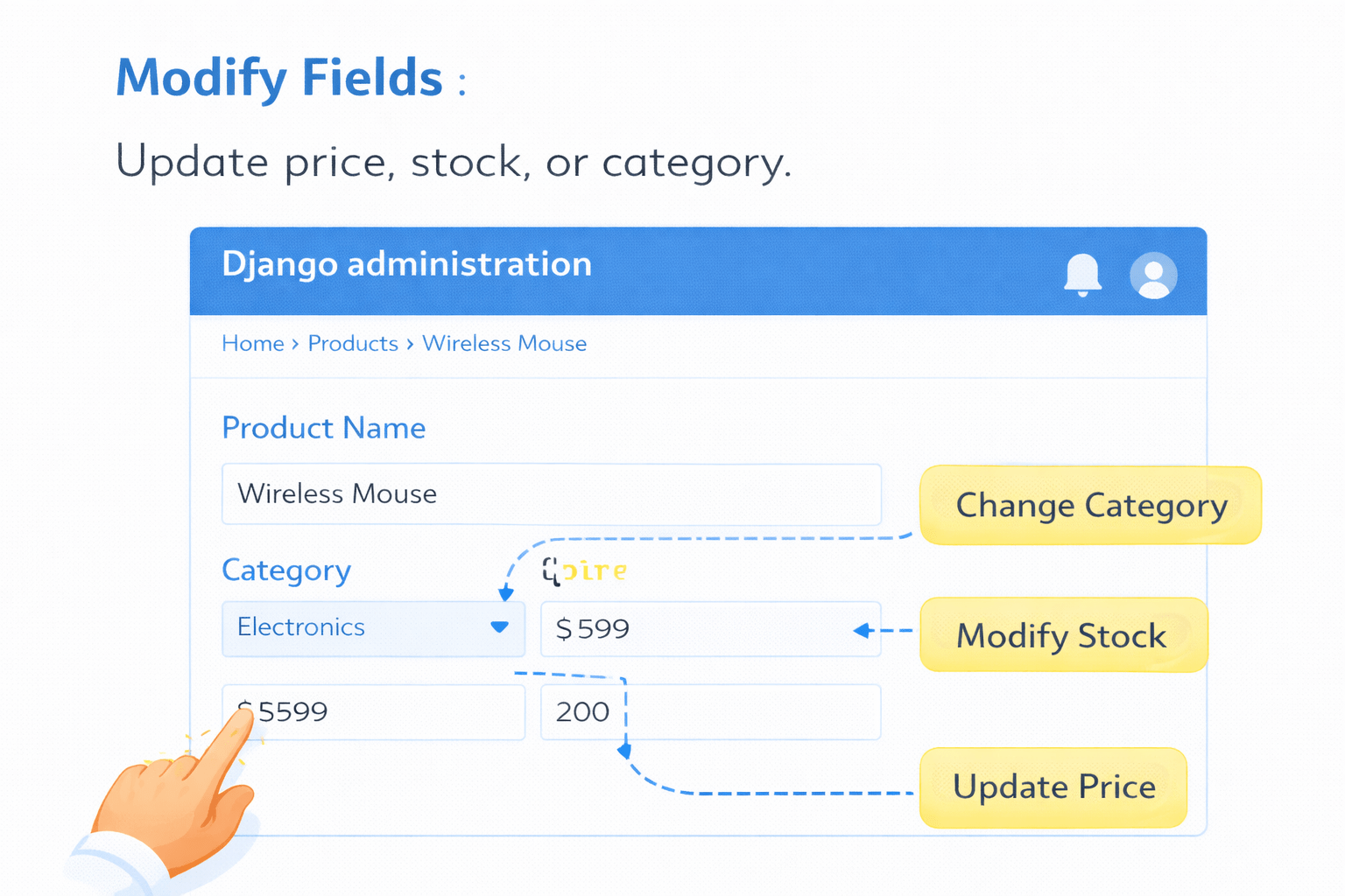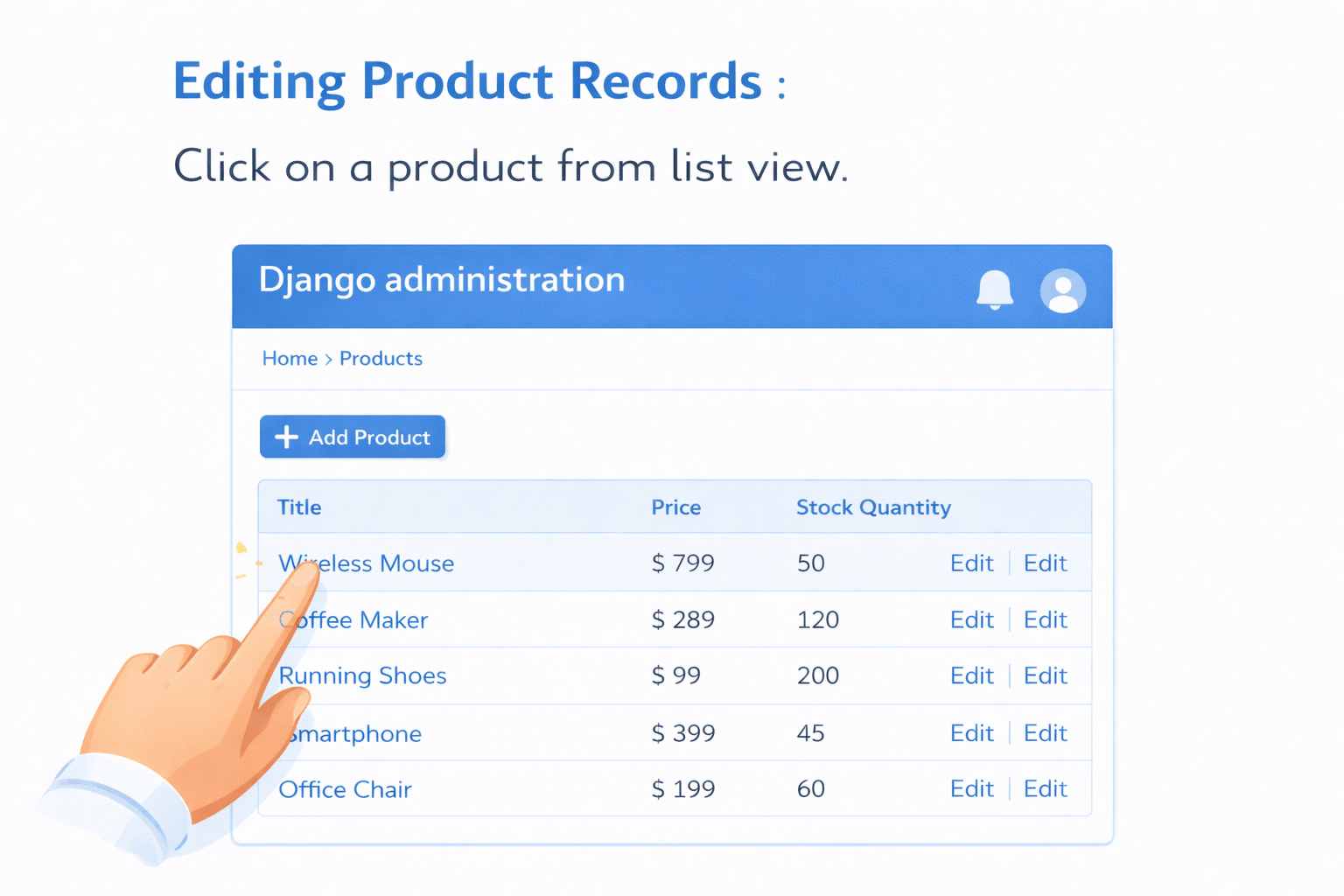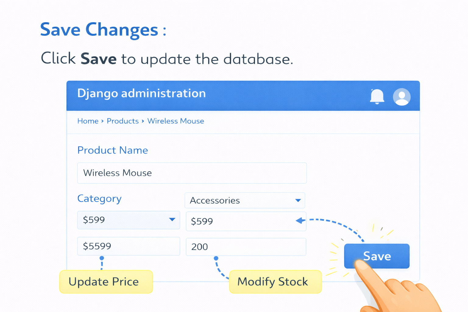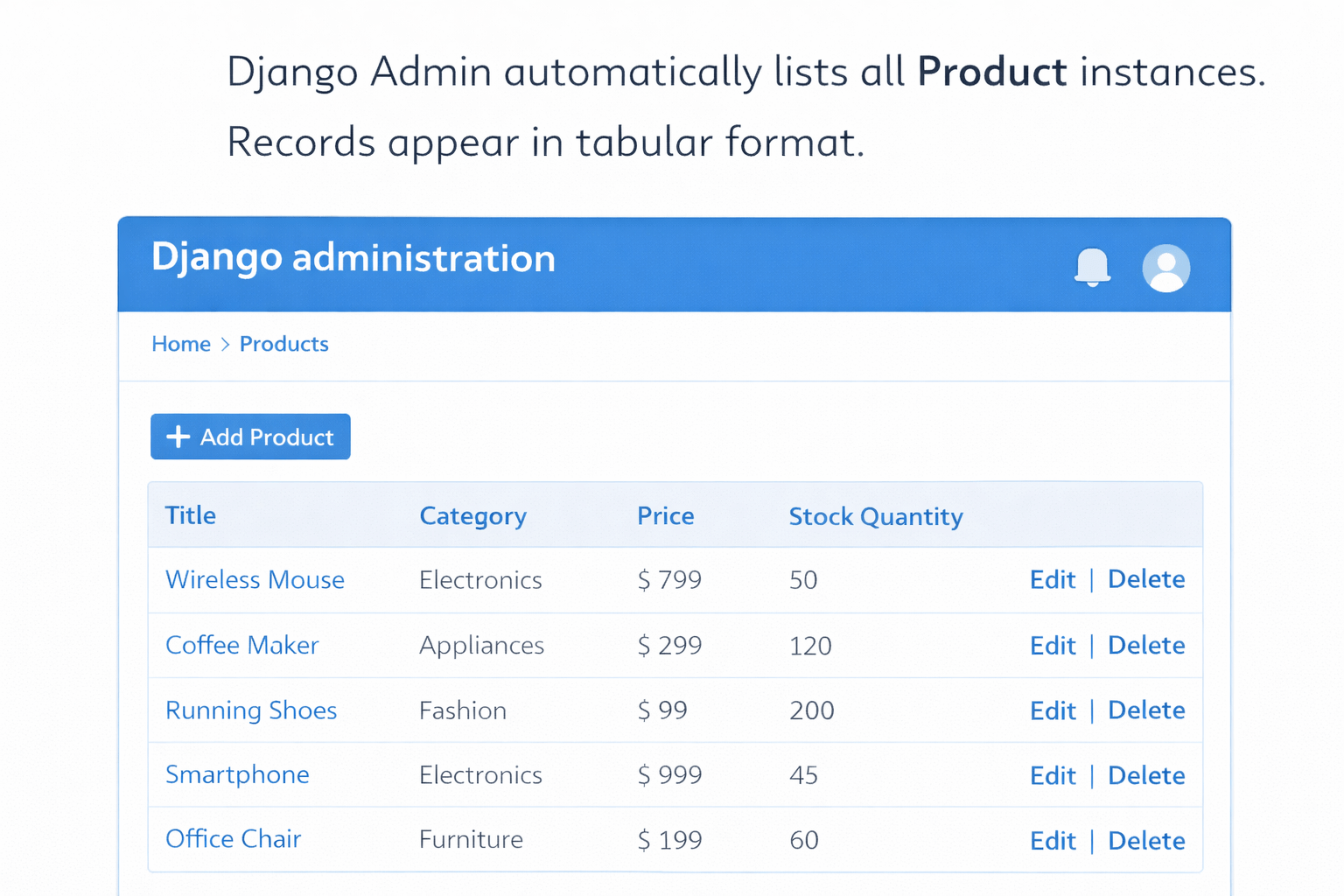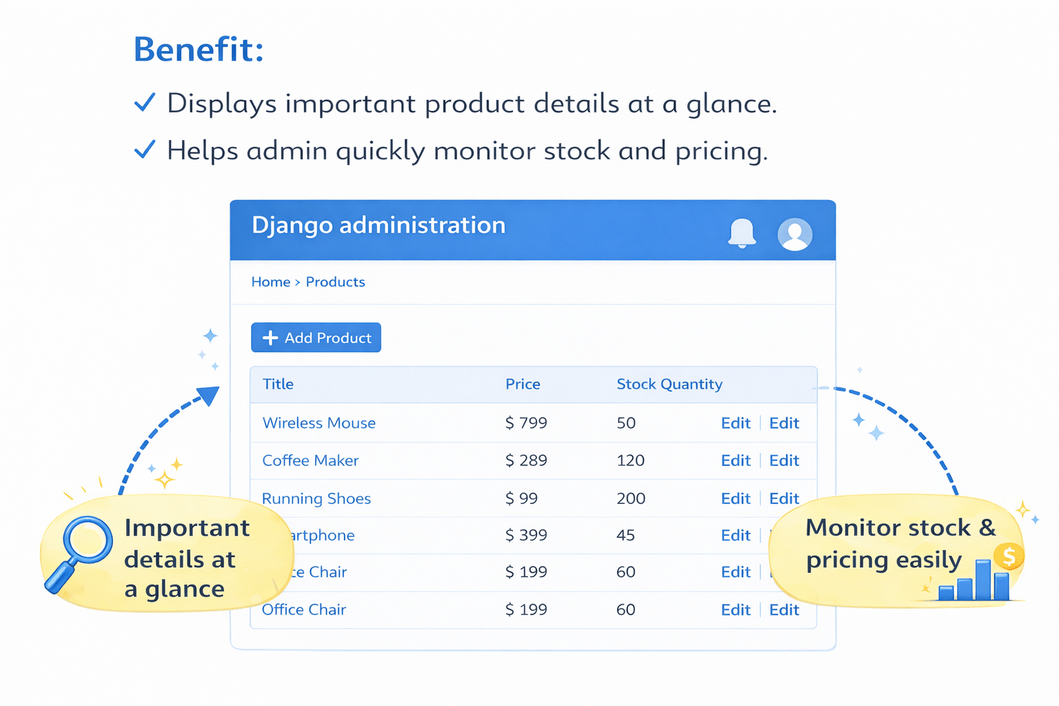 list_display = ('name', 'price', 'category', 'stock')Read Operation in Admin