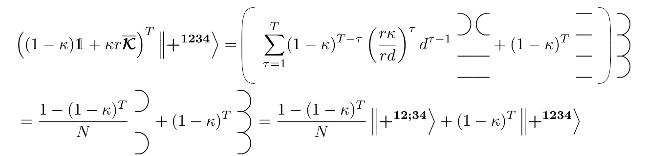 \overline{\mathcal{F}}\sim(1-T\kappa)\overline{F_\delta}+\frac{T\kappa}{N}=\overline{F_\delta}-T\left(\overline{F_\delta}-\frac{1}{N}\right)\kappa